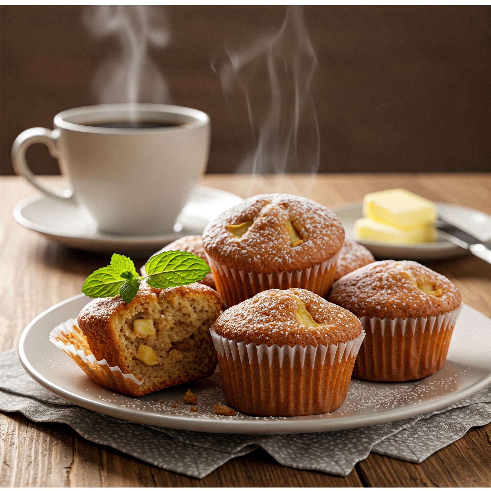 Këto muffins të buta me mollë dhe kanellë janë perfekte për mëngjes ose një snack të shëndetshëm gjatë ditës. Aroma e kanellës kombinohet në mënyrë të përkryer me ëmbëlsinë natyrale të mollëve, duke krijuar një shije të ngrohtë dhe komode.