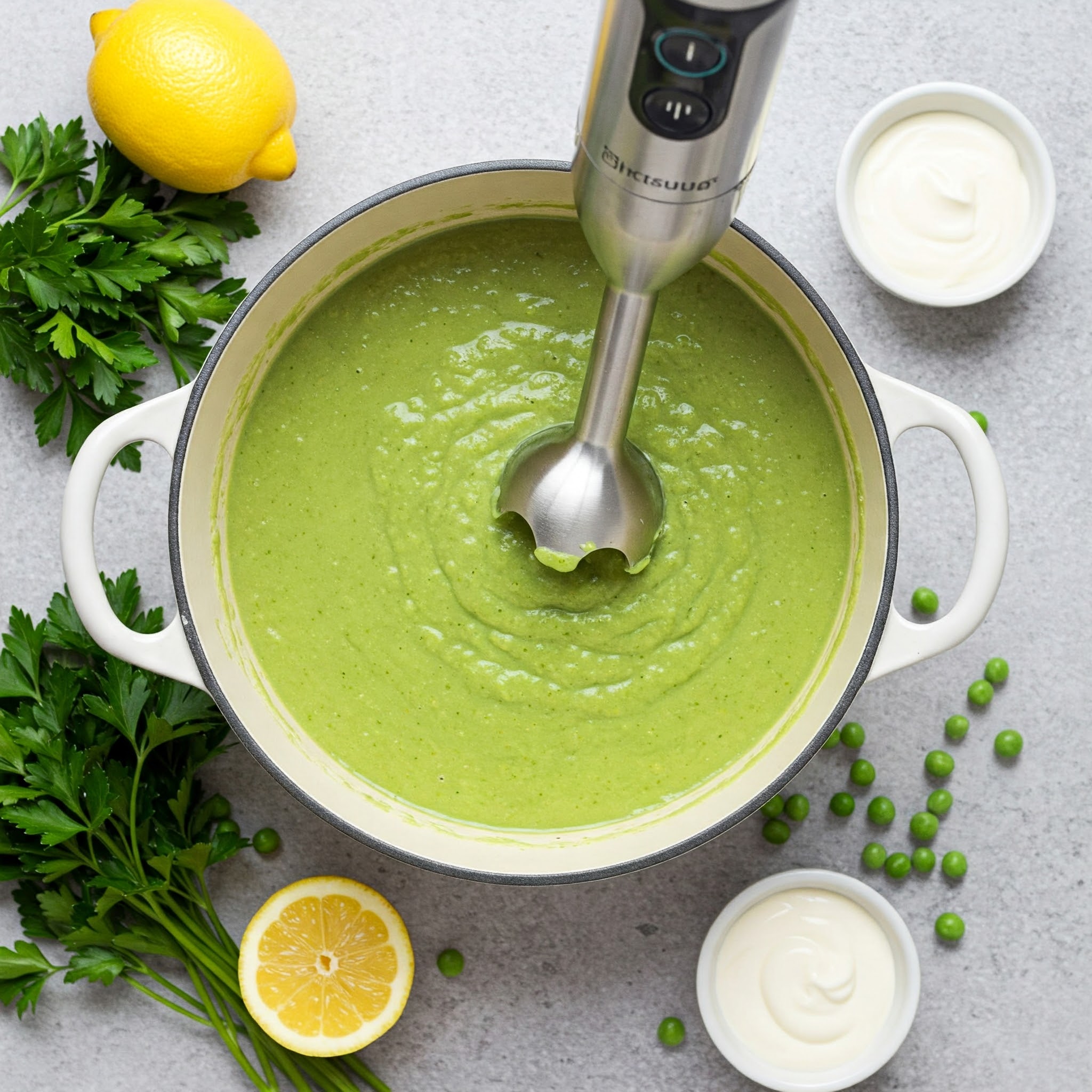 Kjo supë me bizele është një recetë e lehtë, e shijshme dhe plot vlera ushqyese. Me një teksturë të butë dhe një shije të freskët, ajo përgatitet shpejt dhe është ideale si një vakt i lehtë ose si një fillim i ngrohtë për një drekë të shëndetshme. Kombinimi i bizeleve të ëmbla, qepës dhe erëzave e bën këtë supë perfekte për çdo sezon.
