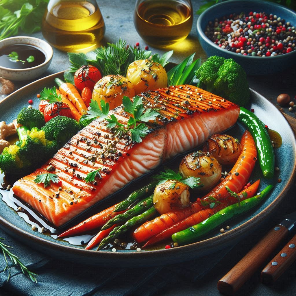Salmon i pjekur me xhenxhefil dhe mjaltë